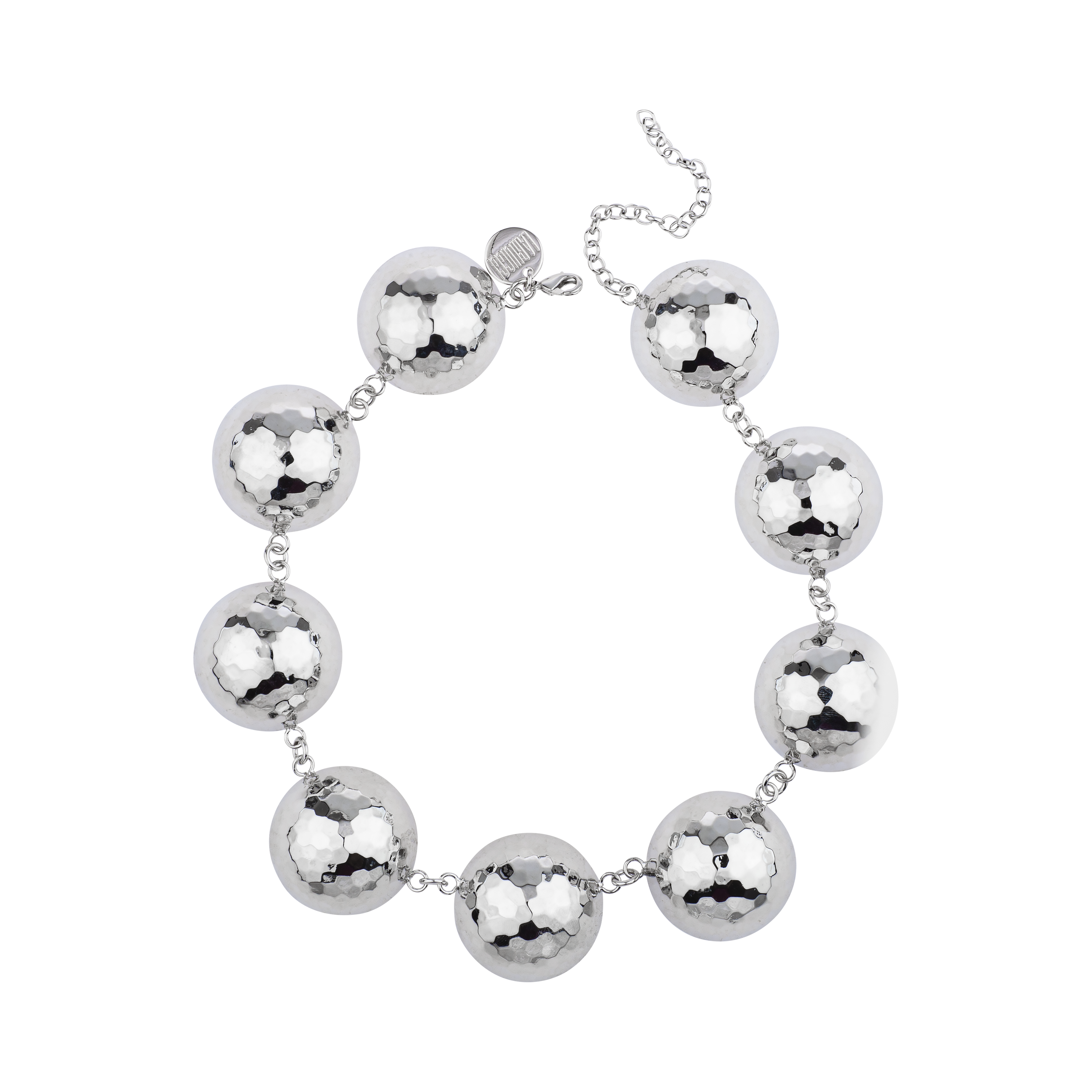 Hammered silver orbs orbit your neck in a powerful cosmic statement—bold, futuristic, and impossible to ignore.